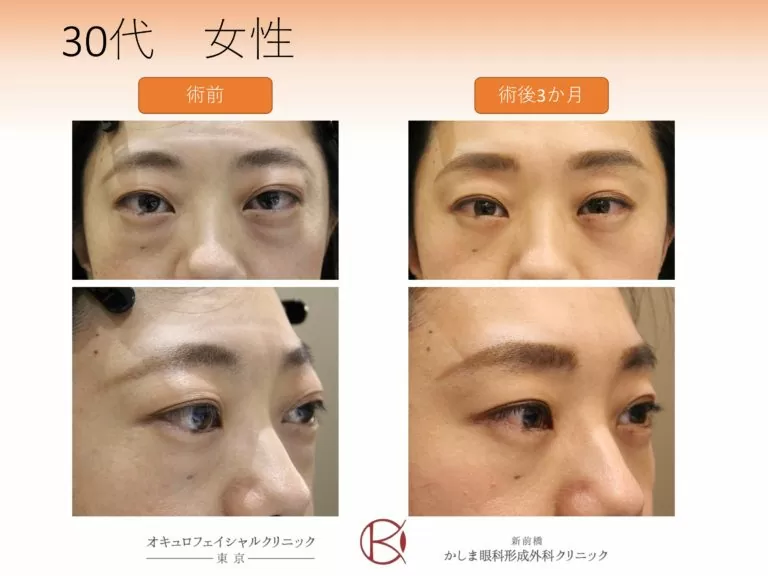 手術前のお顔を見るとバセドウ病眼症によって上のまぶただけでなく、下のまぶたにもふくらみが出ています。