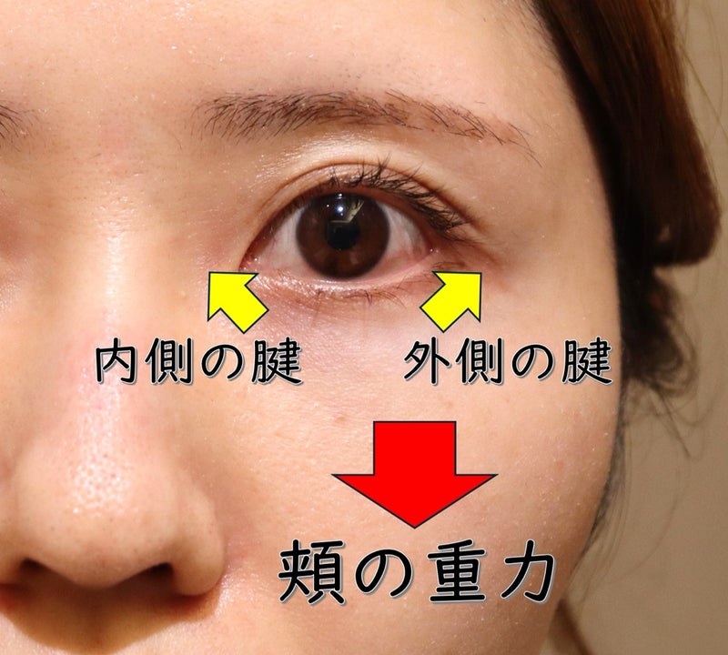 とりあえず頬という非常に重量のある組織が下眼瞼の真下にあり、下眼瞼は目じりと目頭の非常に心もとない構造で支えられているということを理解してください。