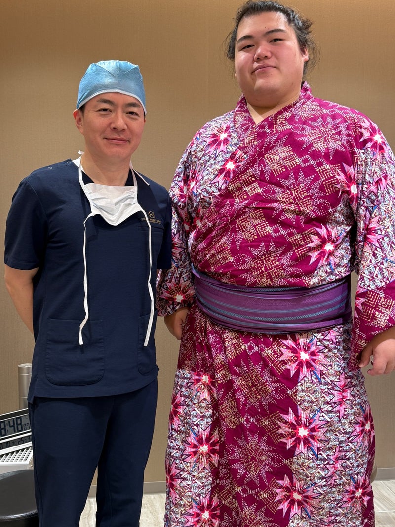 王鵬関の眼窩ブローアウト手術を行いました。王鵬関は祖父が大鵬、父親が貴闘力という相撲界のサラブレッドなのですが、九月場所で右眼を負傷していたのですね。本当はもっと早くにオペを組みたかったのですが、巨躯のために特別な機材を揃える必要があり、今日のオペになりました。嵌頓した組織を綺麗に戻して再建できました。ここから頑張ってもらって横綱になってほしいと思います!