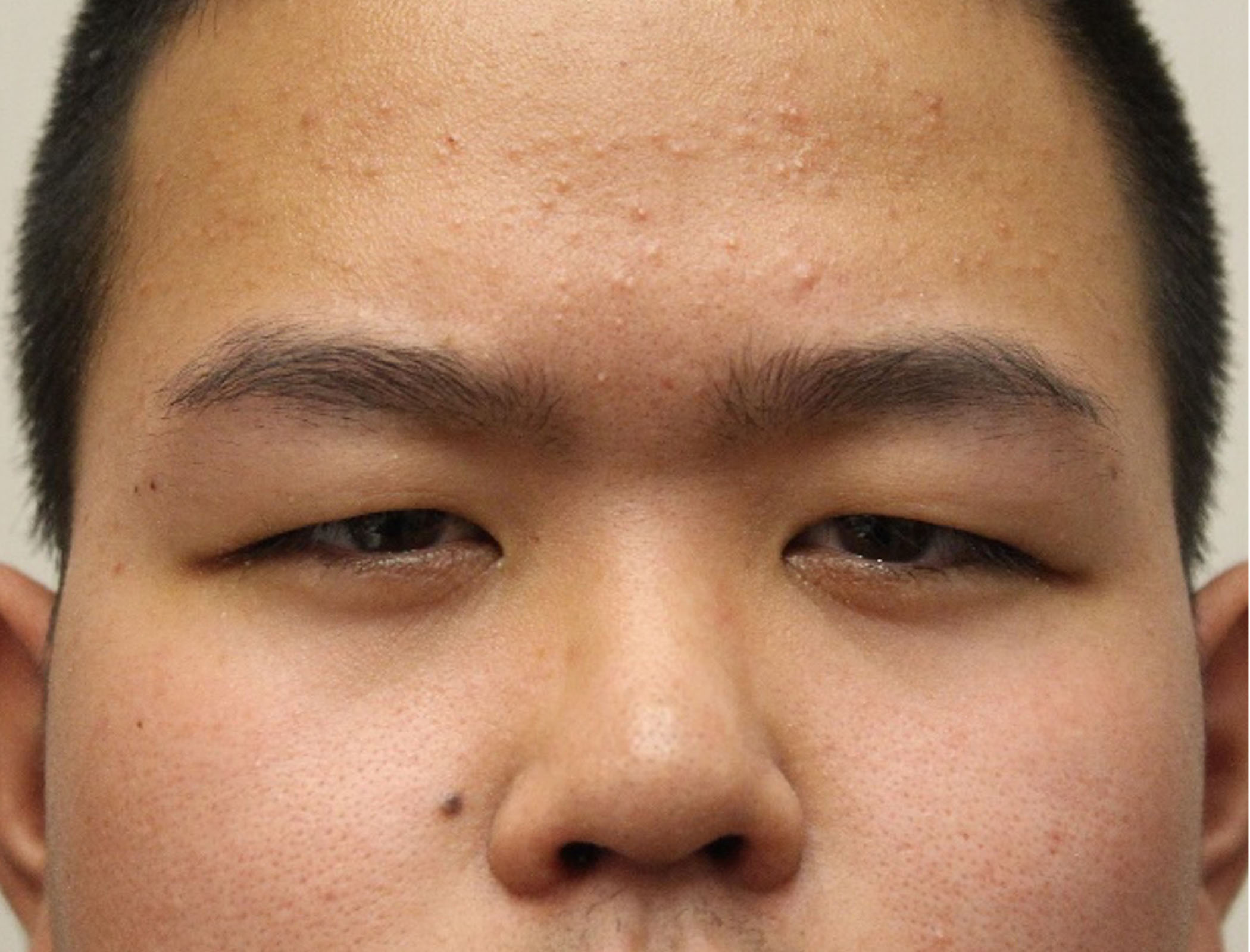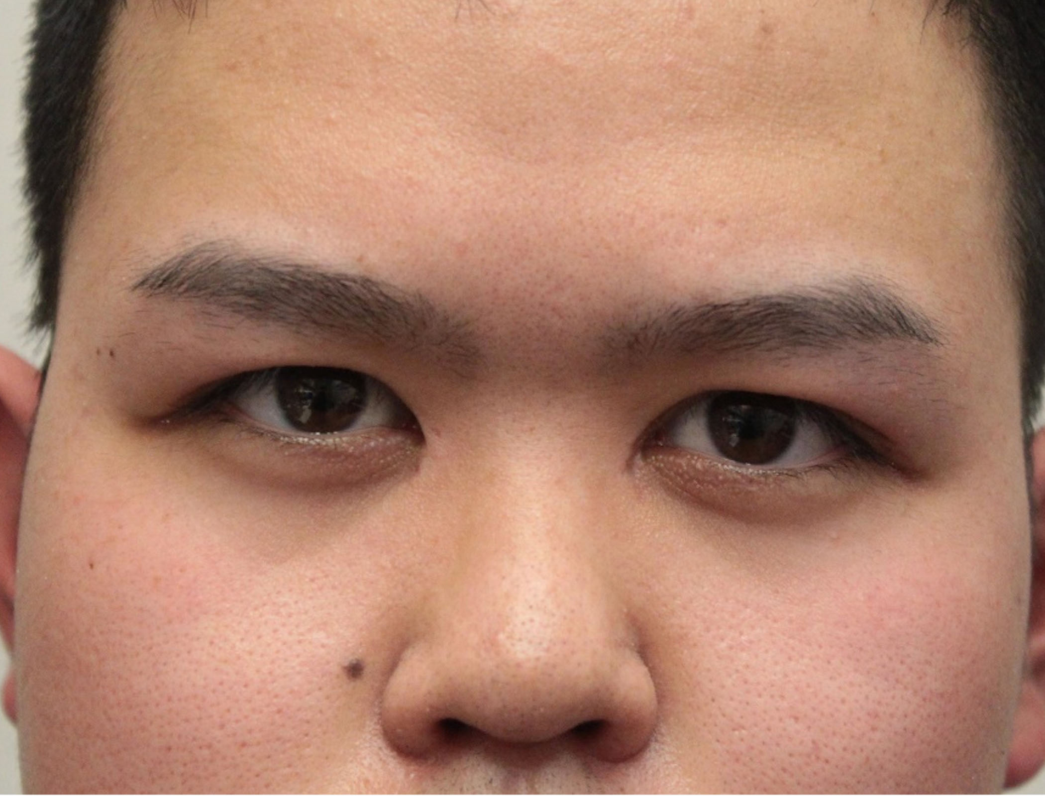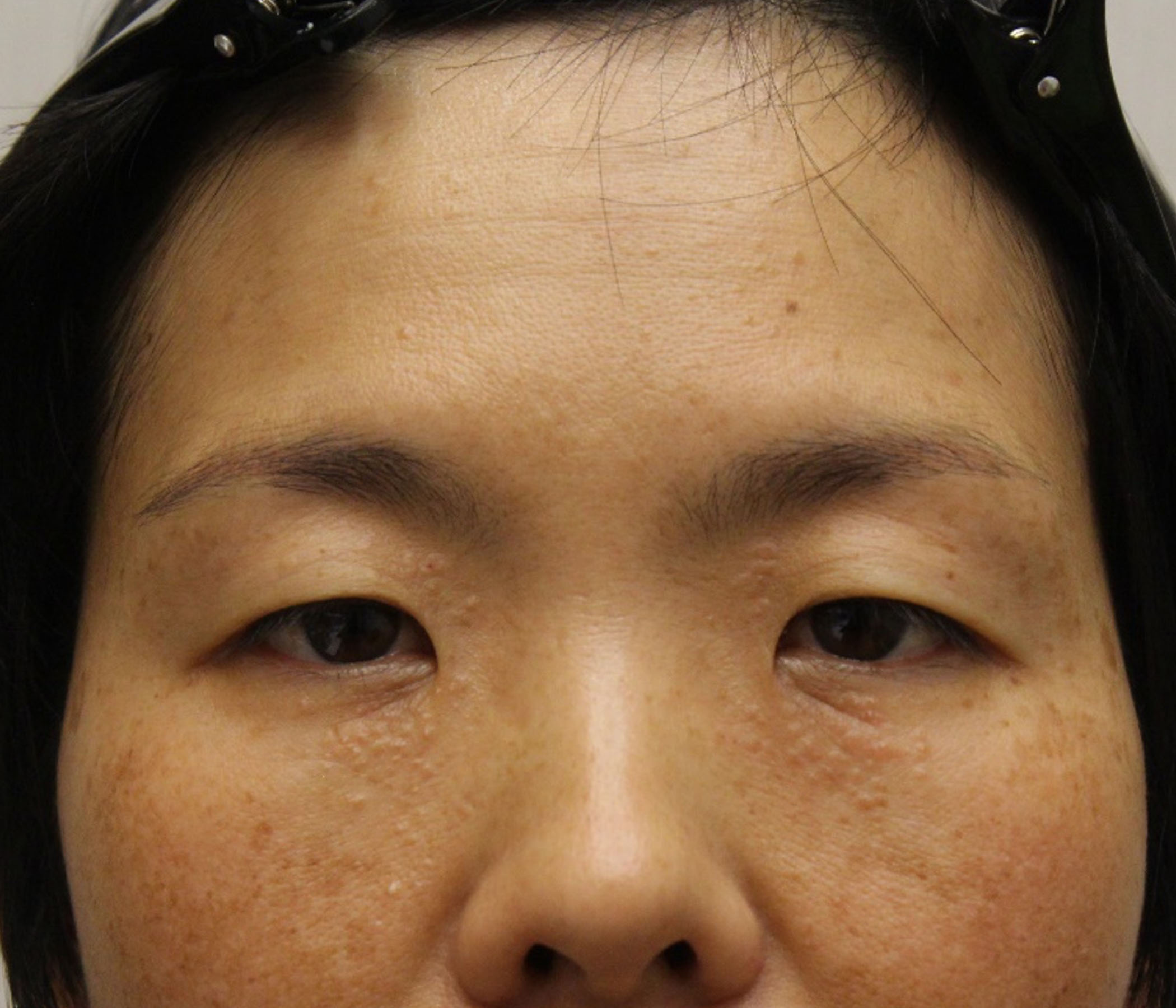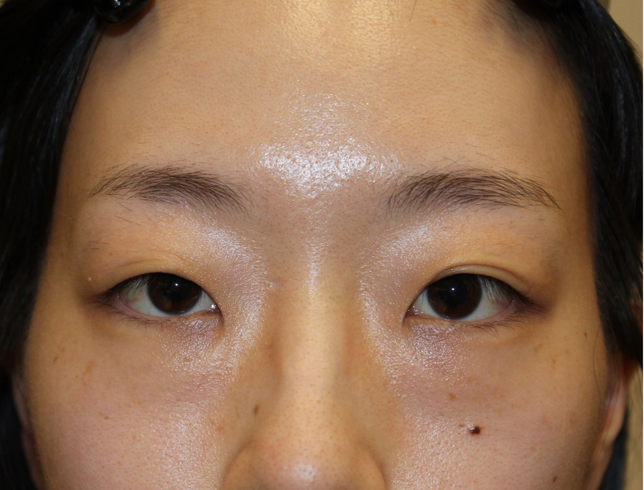 - 皮膚のたれマブタにより、眉毛が上がり、おでこにシワが出来てしまっています。