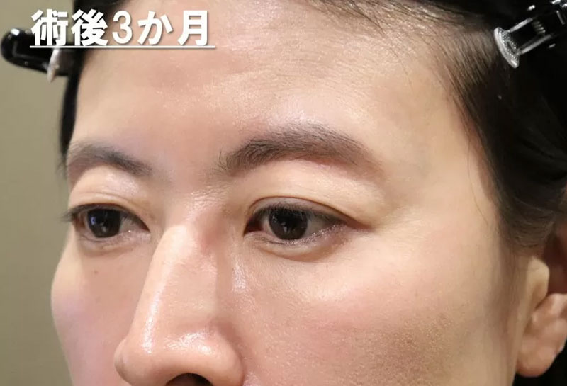上まぶたの膨らみは消え、やや凹んだ状態になっています。目の距離も狭くなりバランスが良くなっています。奥の左眼を見ると違いが分かります。